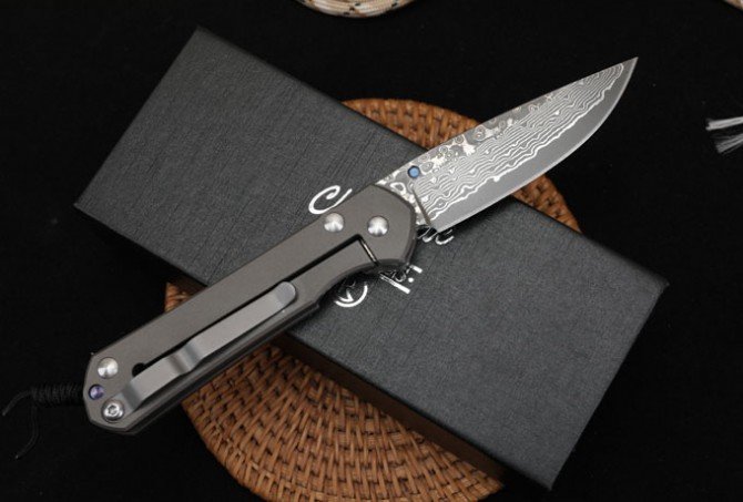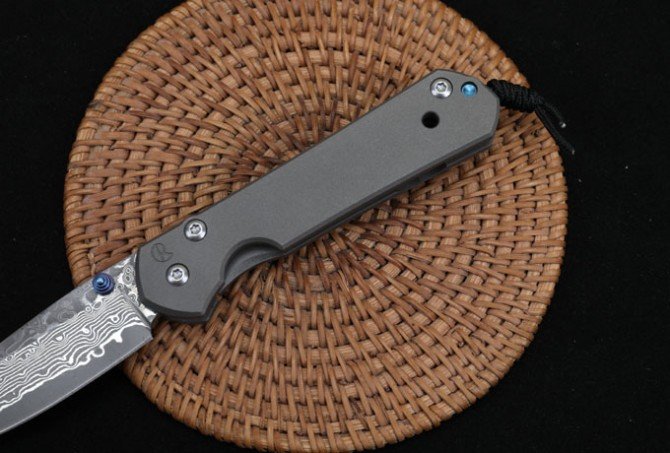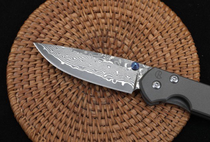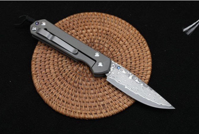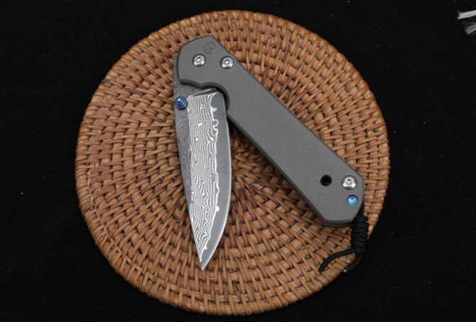 Christoph Damascus Titanium Handled Folding Knife (Flat Pattern)