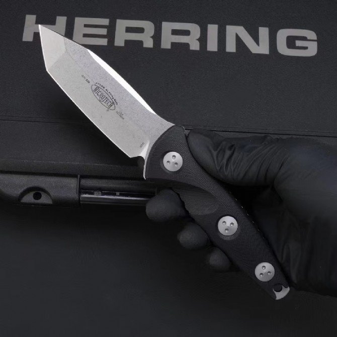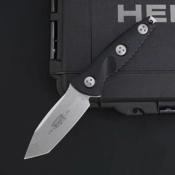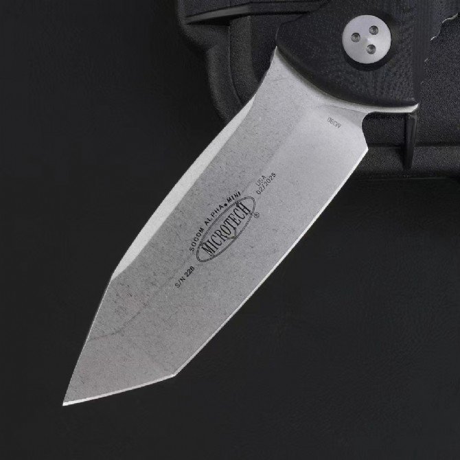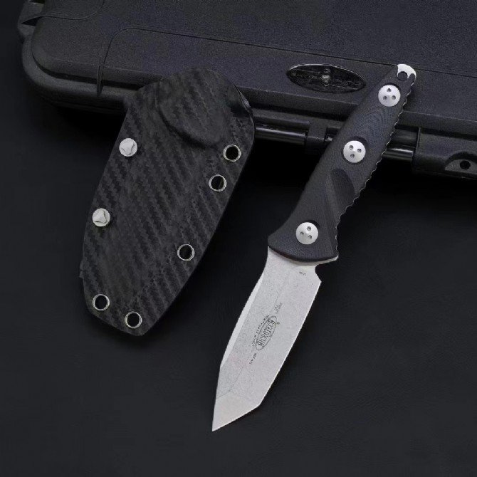 MT Microtech T-Tip Stonewashed Black G10 Shank Socom Alpha Mini Mini SEAL Alpha Tactical Straight with Carbon Fiber K Sheath 114M-10