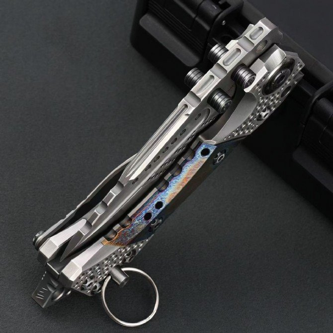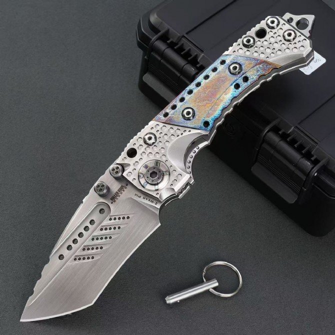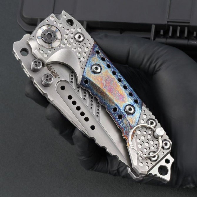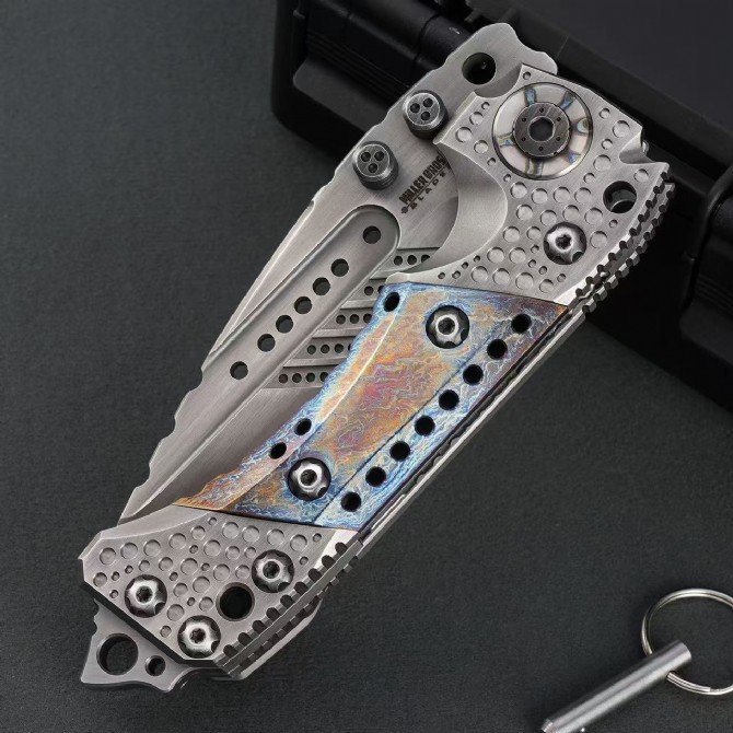 Handle: TC4 titanium alloy + handmade kauri + titanium alloy baking blue base bone + and alloy tail spine