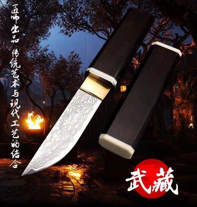 Qiankun Taking the meaning of heaven and earth, the eight sides of the fine grinding represents the eight sides of the qi. Imported ebony one-piece molding completely solved the previous knife sheath by the temperature and humidity brought about by the cracking and deformation. The blade is made of imported Damascus steel, the king of steel, with a large rose texture that makes people fall in love with it, and the blade is extremely sharp and durable, and has a greater collector’s value.